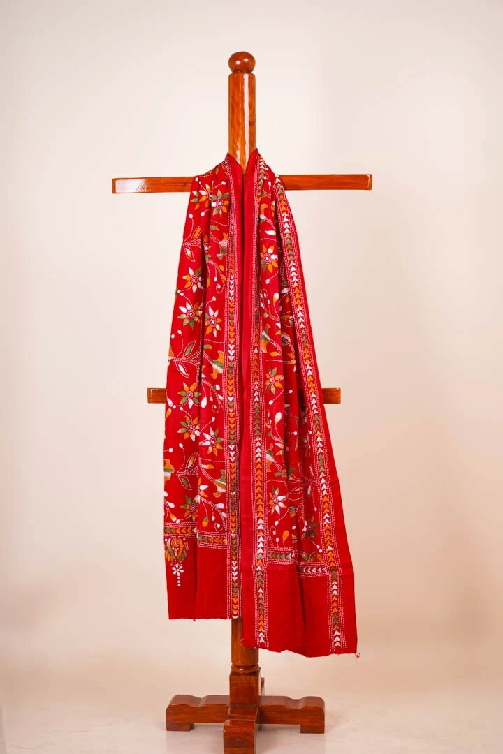 Handcrafted Kantha Dupatta – Red