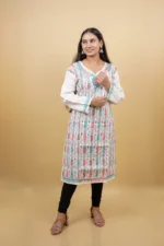 Crafted from soft, breathable fabric, this kurti ensures all-day comfort while exuding effortless sophistication. Whether paired with classic trousers for a refined look or styled with ethnic accessories for a festive touch, it’s a wardrobe essential for those who appreciate the beauty of handloom traditions.